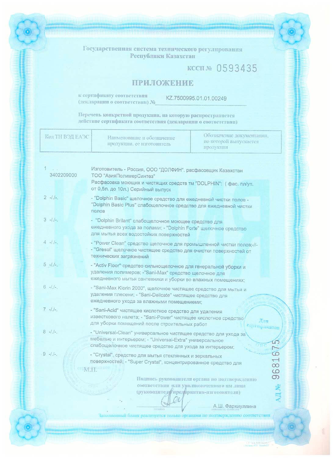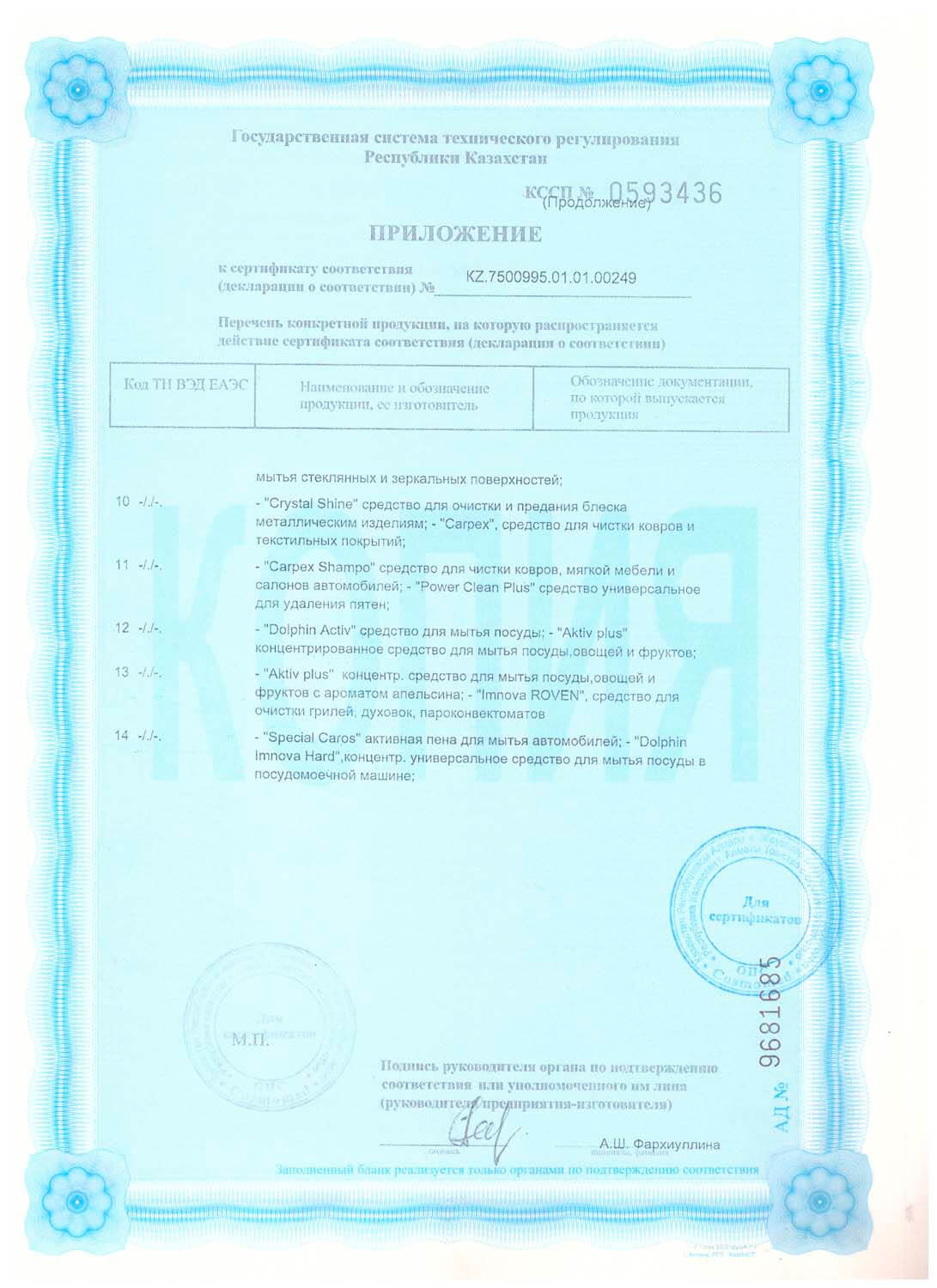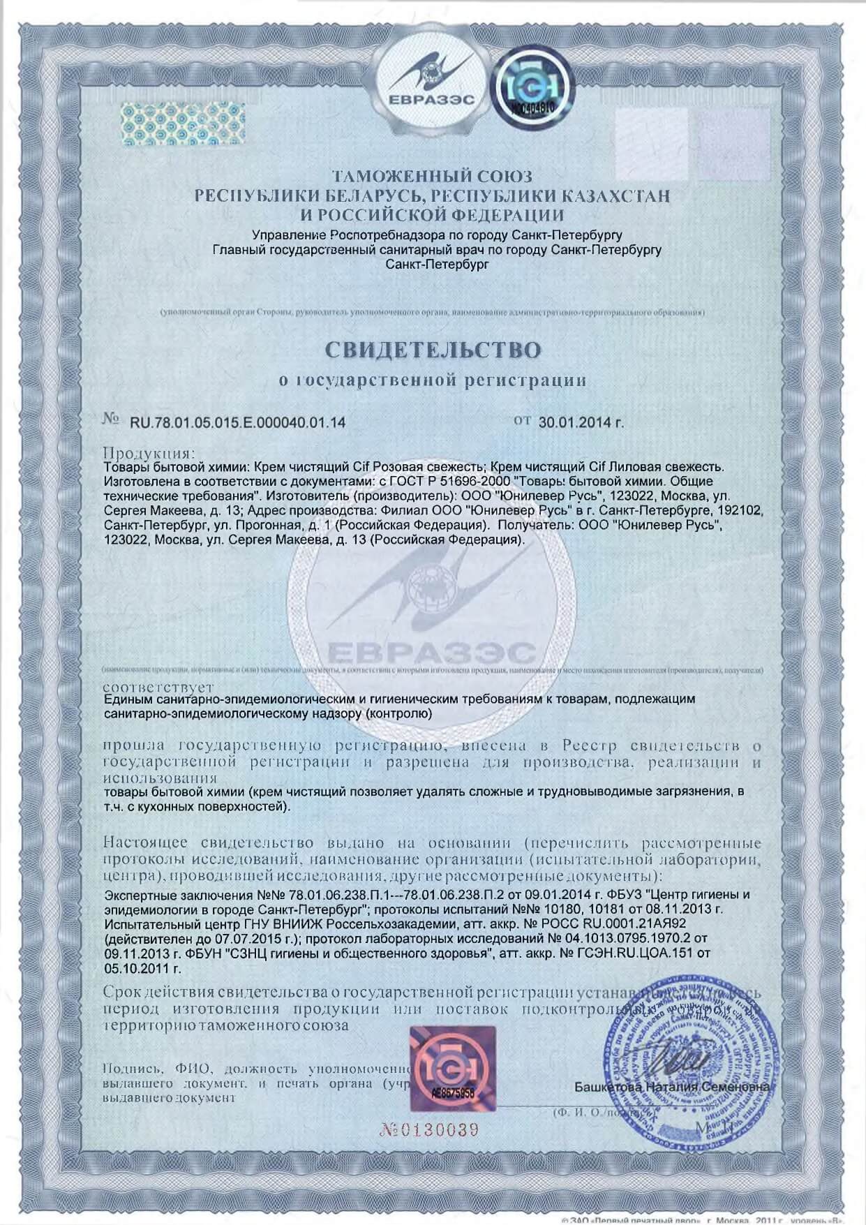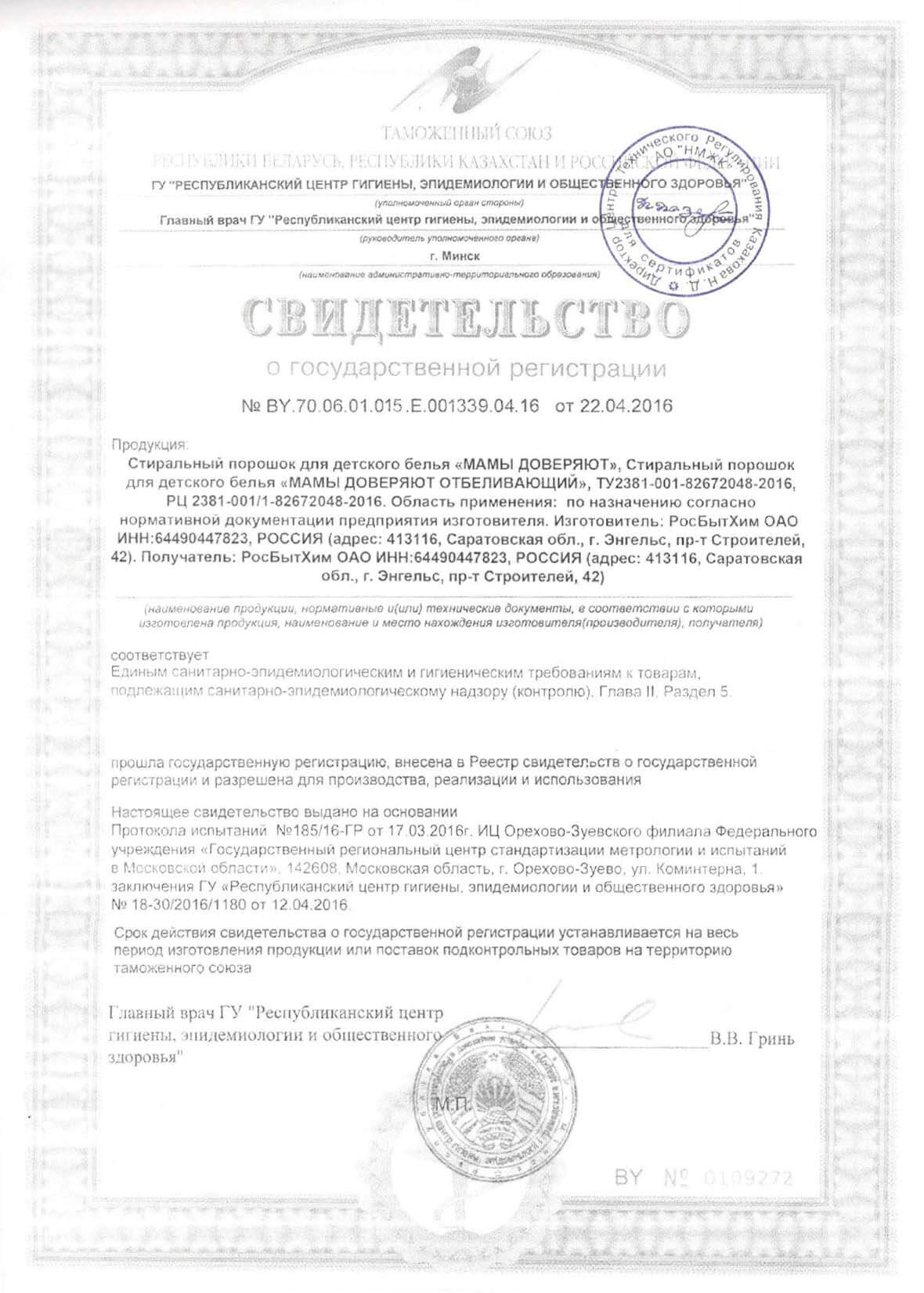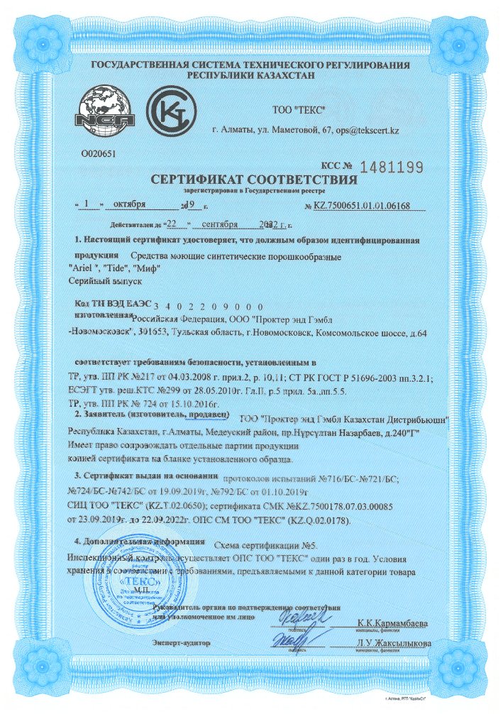 Сертификаты на моющие средства