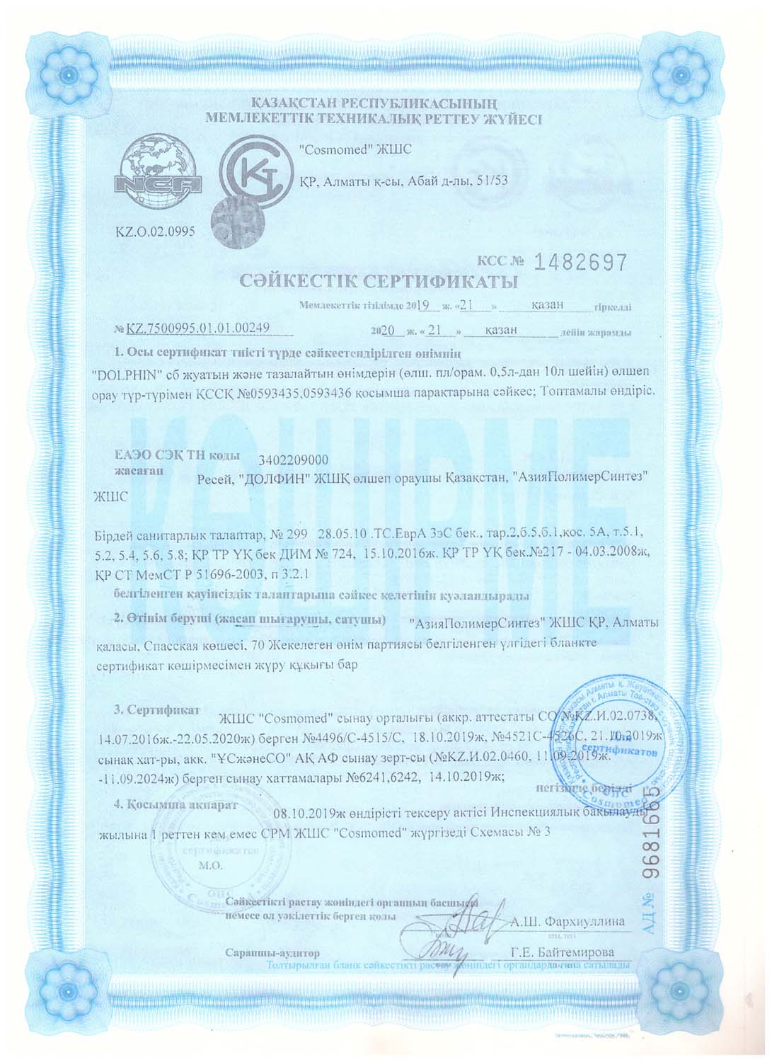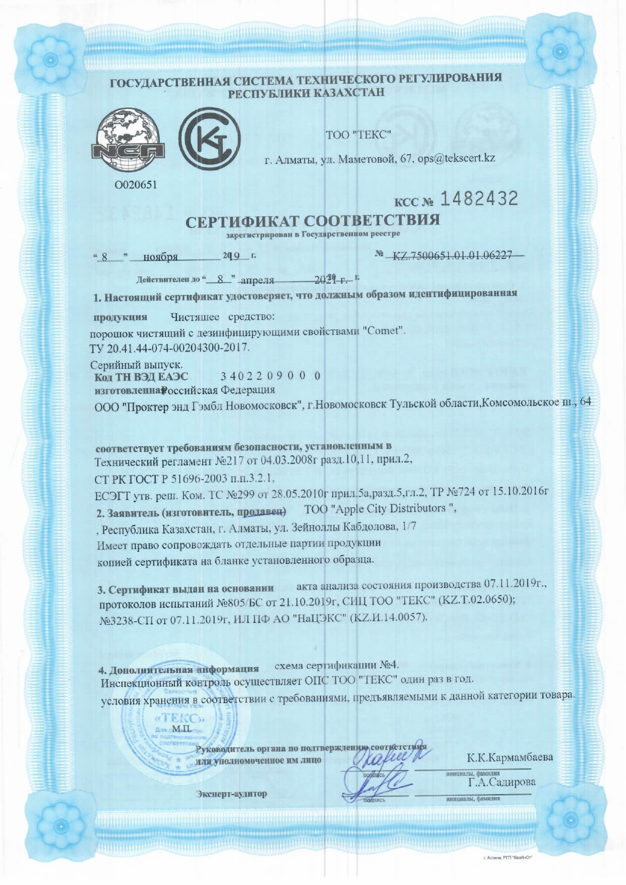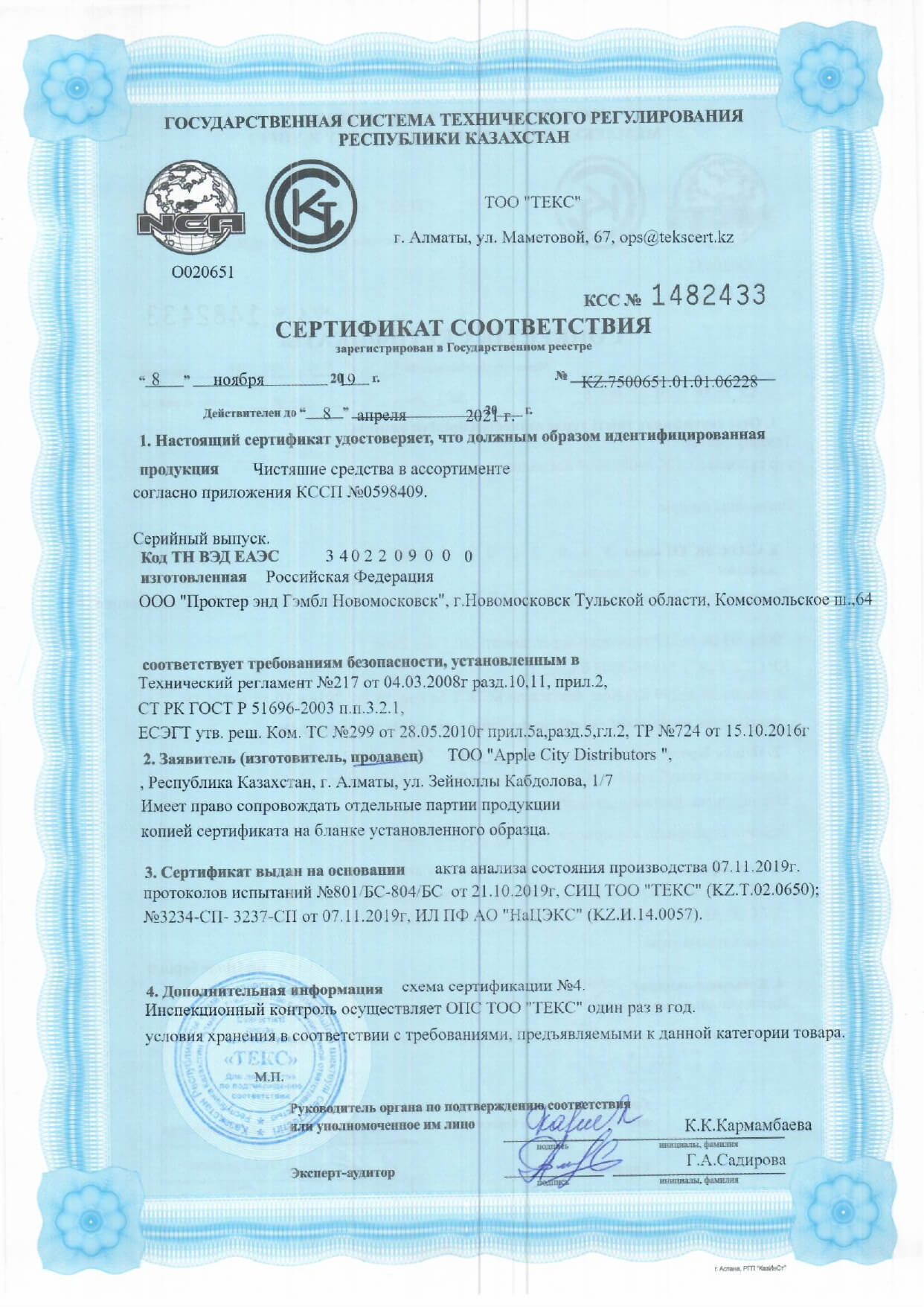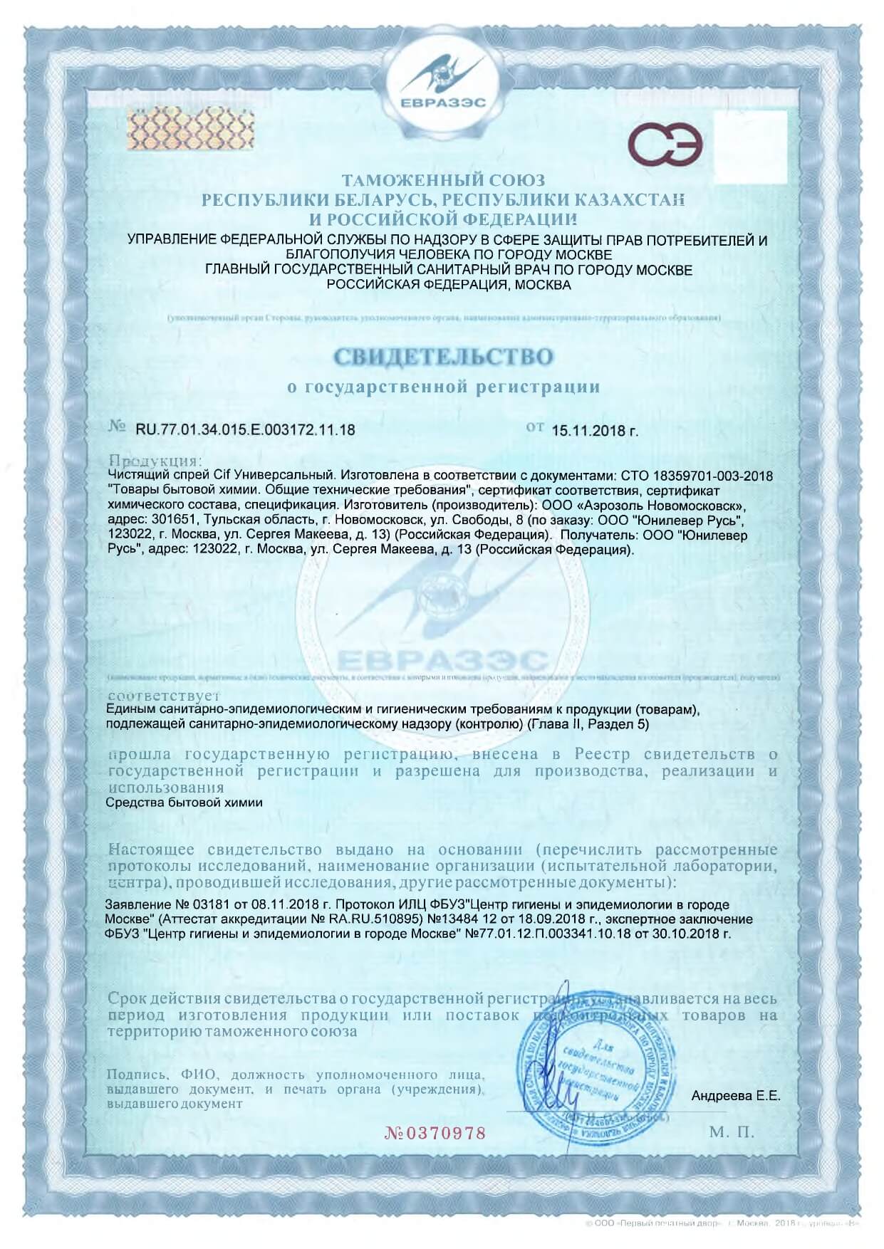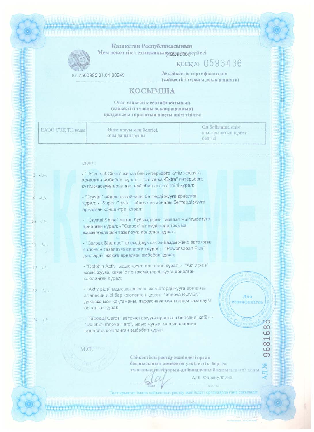 Сертификаты на моющие средства